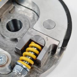 De asjes waarop de slipkoppelingsschoenen gemonteerd worden zijn een tikkeltje verplaatst zodat de koppeling schoenen gelijkmatiger aangrijpen.