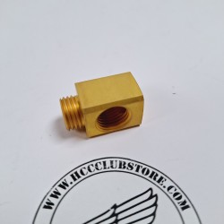 Haaks koppelstuk in gepacificeerd messing.